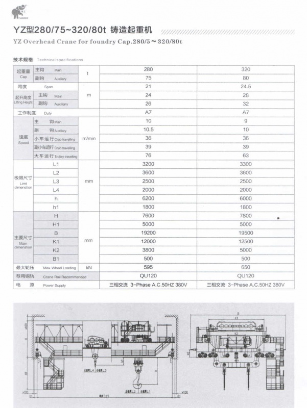 鑄造/冶金吊鉤橋式起重機(jī)是吊運(yùn)熔融金屬/金屬鑄造的起重機(jī),其主要由箱形橋架、起重小車(chē)、大車(chē)運(yùn)行機(jī)構(gòu)和電氣控制系統(tǒng)組成。取物裝置是專(zhuān)用吊鉤。